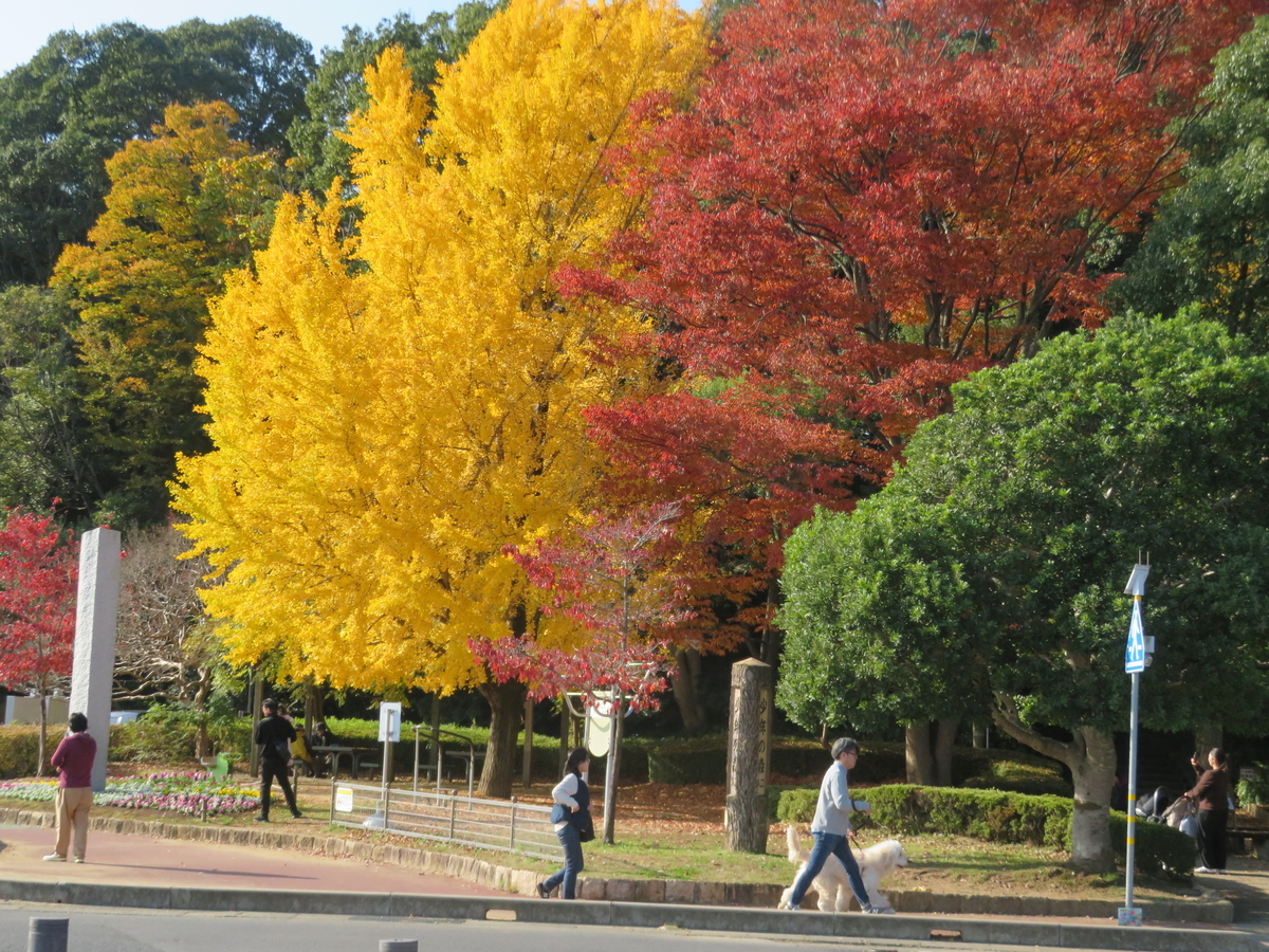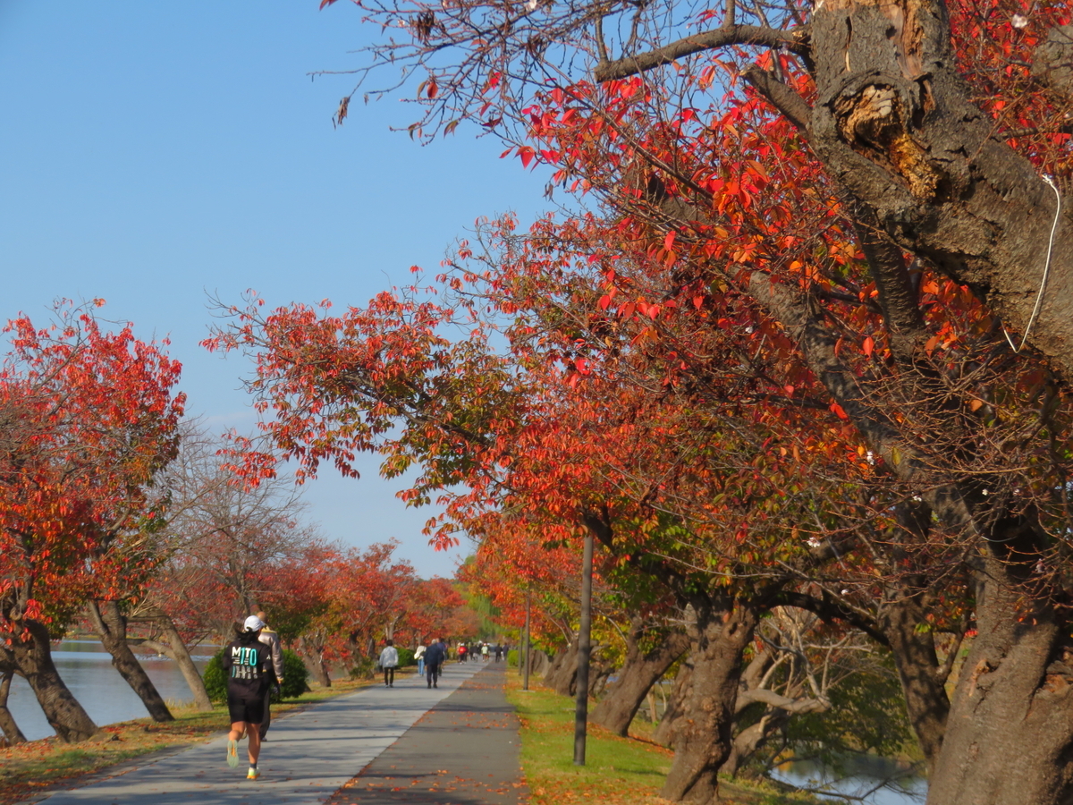 なごりの紅葉を観ながら、野球場周辺を走ってから、陸上競技場の方へ戻りました。